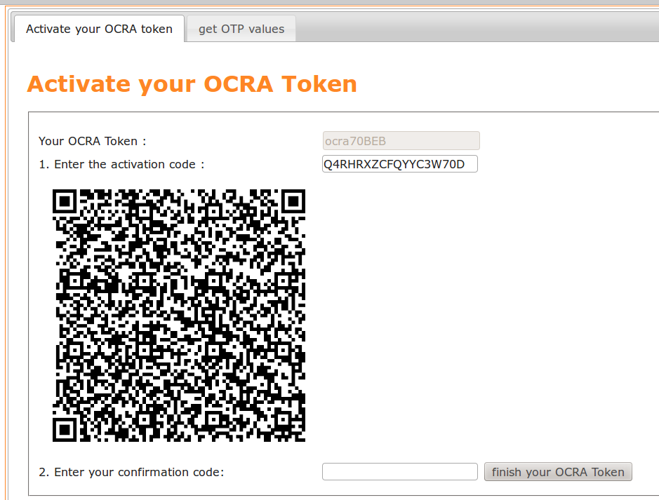 In a second step the user needs to login to the Selfservice Portal and go to the tab “Activate your QR token” and select the corresponding token. The user needs to enter the activation code, which is displayed on his smartphone and then needs to scan the second QR code, which is displayed in the selfservice portal.