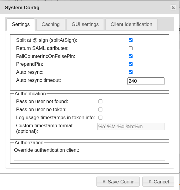 Navigate to ‘LinOTP Config’ in the menu and select ‘System Config’ there
