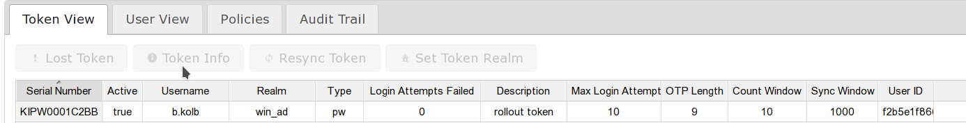 Every token can be declared as rollout token. For sake of simplicity we will use a static password token. This token is enrolled via API and a parameter “rollout” or “scope=” is added to the API call.