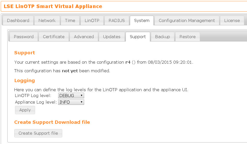 Then you can switch the log level of LinOTP to “debug”. This can be done on the