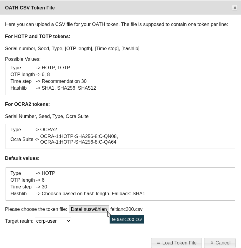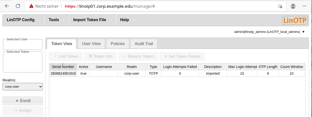 You will also find extensive information about this topic in the LinOTP Manual (Chapter I “LinOTP Management Guide”, Section 6 “Managing Tokens”).