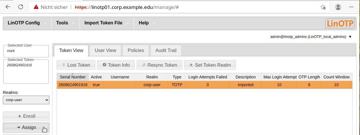 Switch to “Token View” and select the token that should be assigned to the user (the entry will be highlighted).