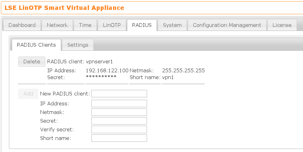 4.7. Configuring the RADIUS access to the LinOTP appliance#