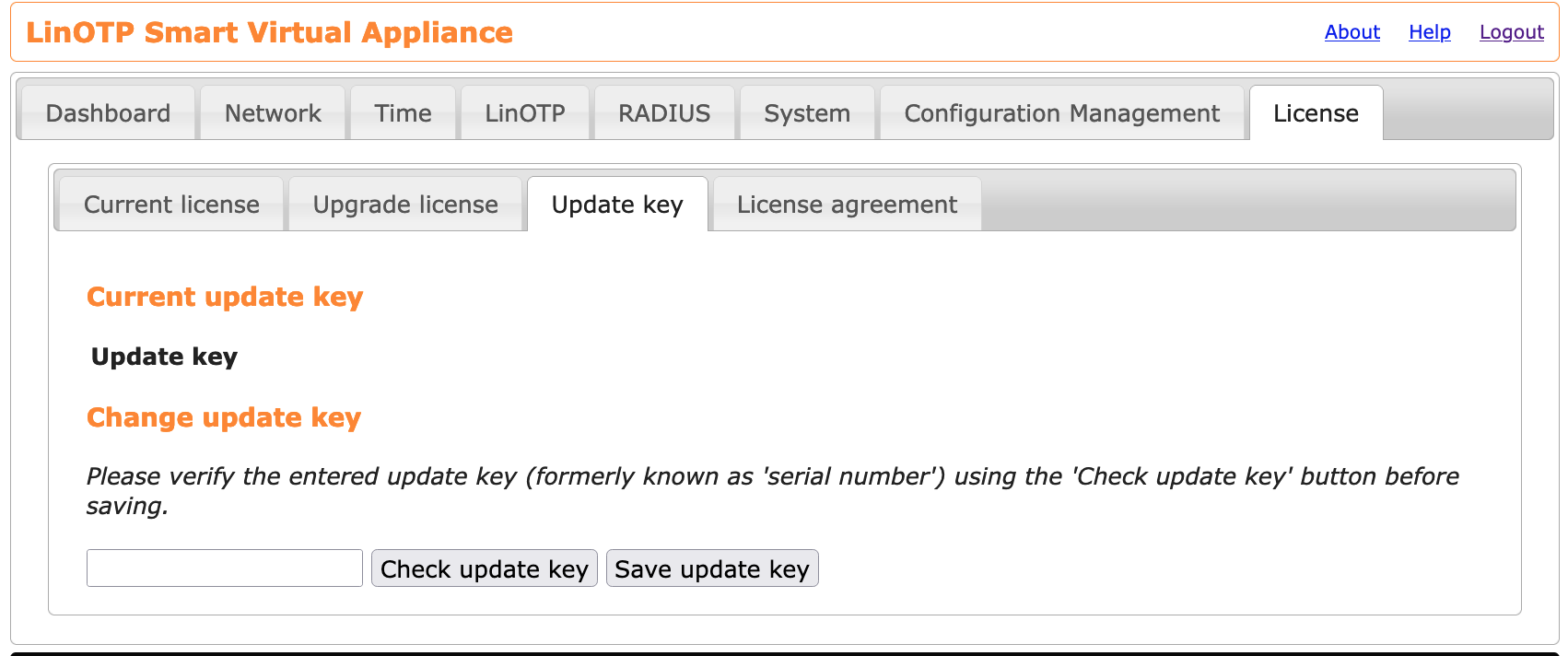 Right after the login you will be asked whether you want to restore a backup or to setup the new machine manually. Please check the box “Restore an LinOTP Smart Virtual Appliance from a backup file” and continue. You will see the head of the website changing to contain fewer configuration items.