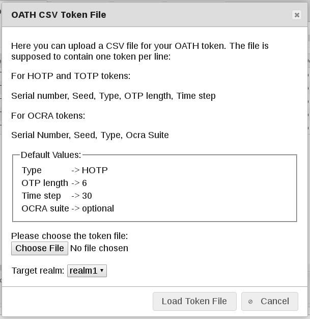 This import dialog can be used to import OATH tokens, that do not provide a PSKC file.
