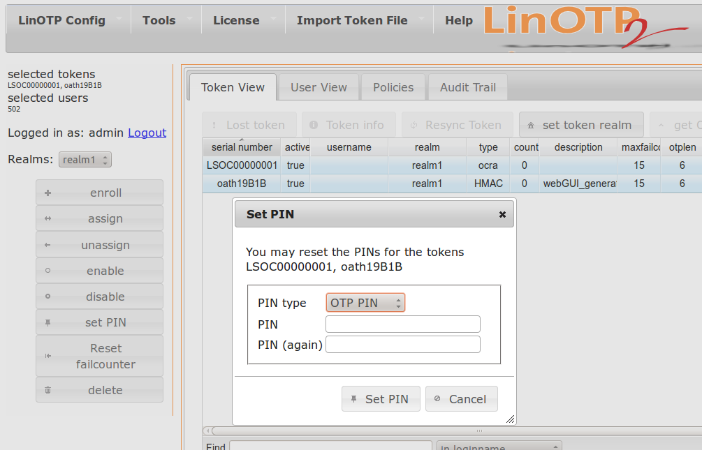 The OTP PIN may either be an additional PIN stored with the token in the LinOTP token database or it may be the password taken from user store. See the policy section OTP PIN variants.